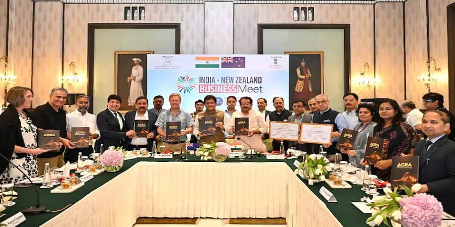 भारत–न्यूझीलंड मुक्त व्यापार कराराच्या पार्श्वभूमीवर आग्रा येथे २६ एप्रिल २०२६ रोजी एक महत्त्वपूर्ण उद्योग संवाद कार्यक्रम संपन्न झाला. या कार्यक्रमात केंद्रीय वाणिज्य व उद्योग मंत्री पियूष गोयल आणि न्यूझीलंडचे व्यापार व गुंतवणूक मंत्री टॉड मॅक्ले यांनी संयुक्तपणे सहभाग घेतला. यावेळी मत्स्यपालन, पशुपालन व दुग्धव्यवसाय राज्यमंत्री एस. पी. बघेल यांचीही प्रमुख उपस्थिती होती. या बैठकीत चामडे व पादत्राणे, आयुर्वेद, योग आणि निसर्गोपचार, वैद्यकीय उपकरणे, हलके अभियांत्रिकी, क्रीडासाहित्य तसेच लघुउद्योग क्षेत्रातील प्रतिनिधींनी आपले विचार मांडले.