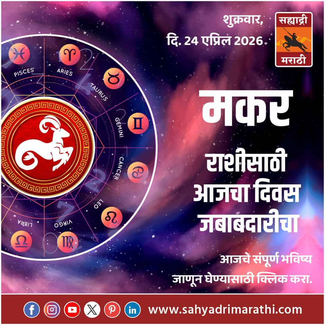 आजचे राशीभविष्य : शुक्रवार, दिनांक 24 एप्रिल 2026.