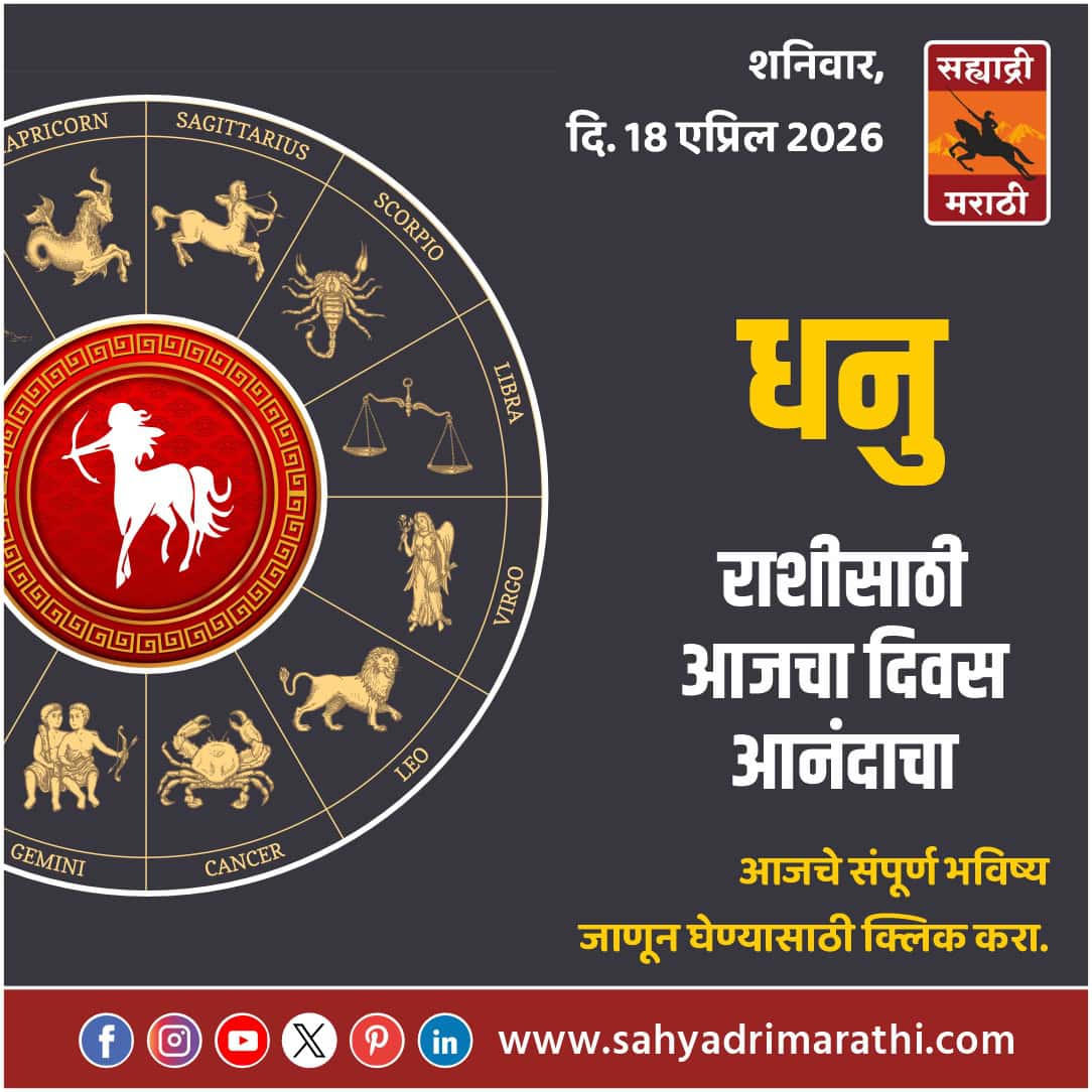 आजचे राशीभविष्य : शनिवार, दिनांक 18 एप्रिल 2026.